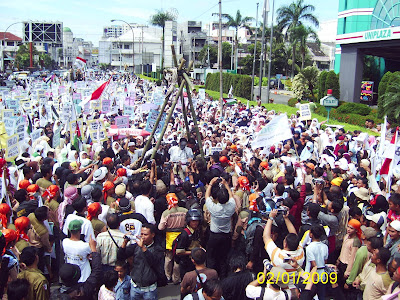 Ratusan ribu massa PKS mengepung Konjen Amerika di Gedung Uniland Medan pada hari Sabtu (3/01/09) dihadiri sekitar ratusan ribu orang. Massa berkumpul di Masjid Agung Medan sebelum melakukan long march ke konjen Amerika di Gedung Uniland, Wakil Gubernur, PGSI, Muhammaddiyah, PBMI, dan ormas lainnya ikut dalam aksi tersebut. Aksi ini menuntut segera diakhirinya pendudukan Israel terhadap Palestina. Meski terpaut jarak yang teramat jauh antara Indonesia dan Palestina, namun hal tersebut tidak menyurutkan langkah rakyat Indonesia untuk peduli terhadap permasalahan yang terjadi di Jalur Gaza. Demikian disampaikan Ketua IKADI SUMUT Shakira zandi MSi pada aksi Solidaritas Untuk Palestina, (3/1), di depan konjen tersebutKarenanya, berbagai komponen bangsa Indonesia bersatu mengelar aksi kemanusiaan dan menghimpun dana untuk misi kemanusiaan di Palestina.“Meski kami jauh, tidak paham bahasa dan berbeda latar belakang budaya, tidak akan sedikit pun bergeser tekad kami untuk membantu rakyat Palestina,”ungkapnya lantang.
